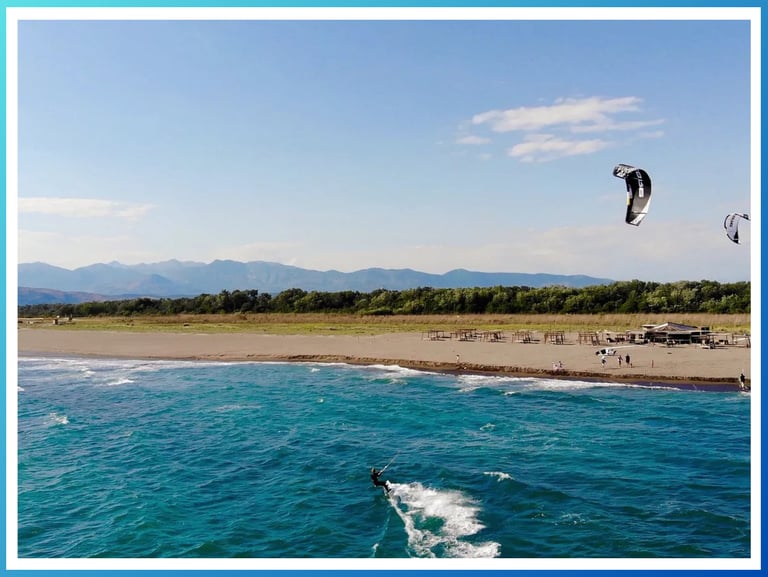 • Pacha Surf Beach je uređena sportska plaža za kite surfing i wind surfing na Velikoj plaži u Ulcinju