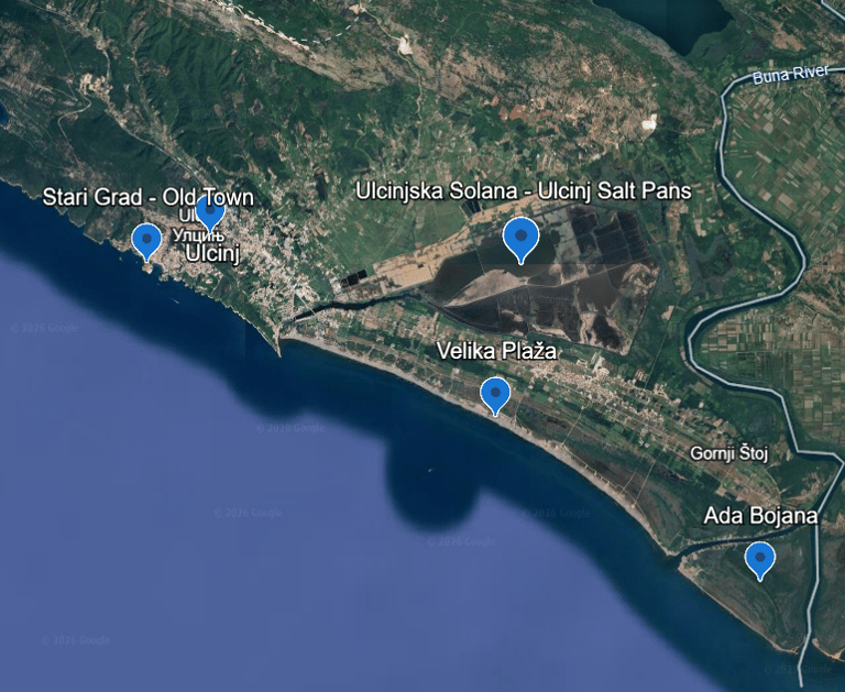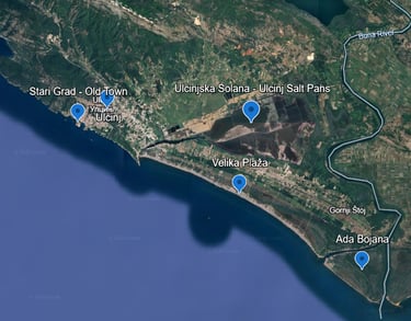 Na mapi su prikazane najpoznatije lokacije koje se nalaze u blizini Ulcinja. Preporučujemo da ih posjetite.