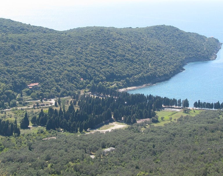 Mjesto na kojem priroda razdvaja dvije potpuno različite strane Ulcinja – dugu pješčanu Veliku plažu s jedne strane i netaknute stjenovite uvale prema Borovoj šumi s druge.